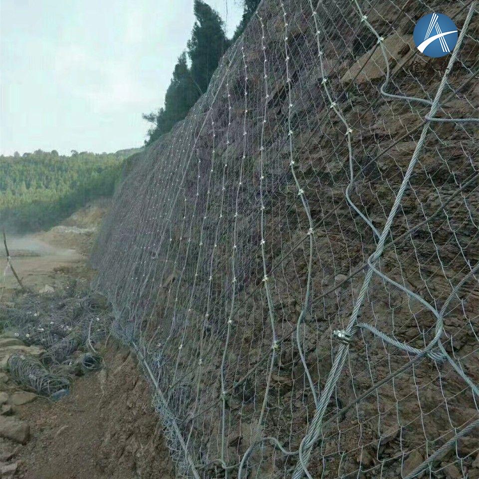充分利用金屬涂層防腐技能,選用熱鍍鋅鋼絲繩和鋼絲或鋅鋁合金涂層鋼絲,保證體系的防腐壽數(shù)更長(zhǎng),前者一般可達(dá)30-50年,后者可達(dá)數(shù)百年。如有必要,只能更換少量零件以延伸使用壽數(shù)。邊坡防護(hù)網(wǎng)絡(luò)對(duì)邊坡穩(wěn)定性起著明顯的效果,有效地控制了邊坡滑坡和滑坡的惡化。它對(duì)巖崩、山崩、滑坡攔截等方面起著決定性的效果,在很大程度上有效地阻止和削減了災(zāi)害的發(fā)生。